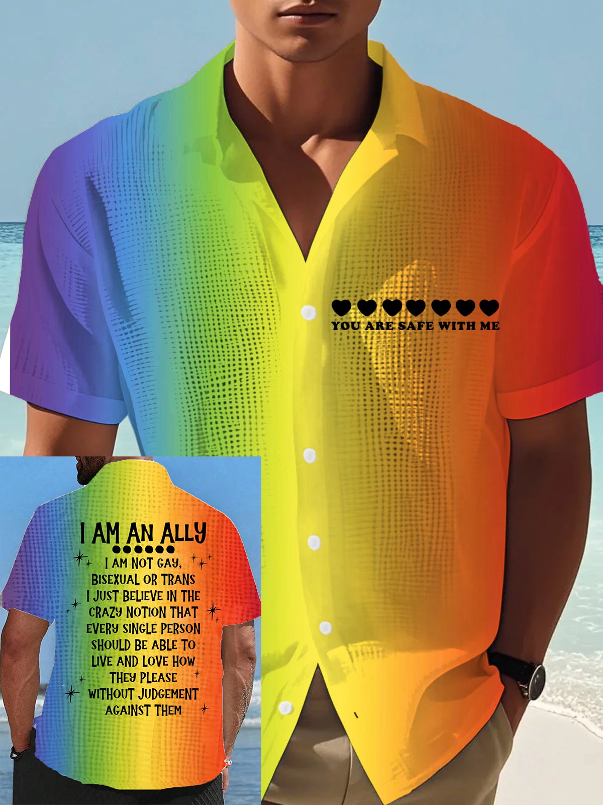 Men's Rainbow Pride Lgbt Rainbow Stripe Graphic Casual Shirt
