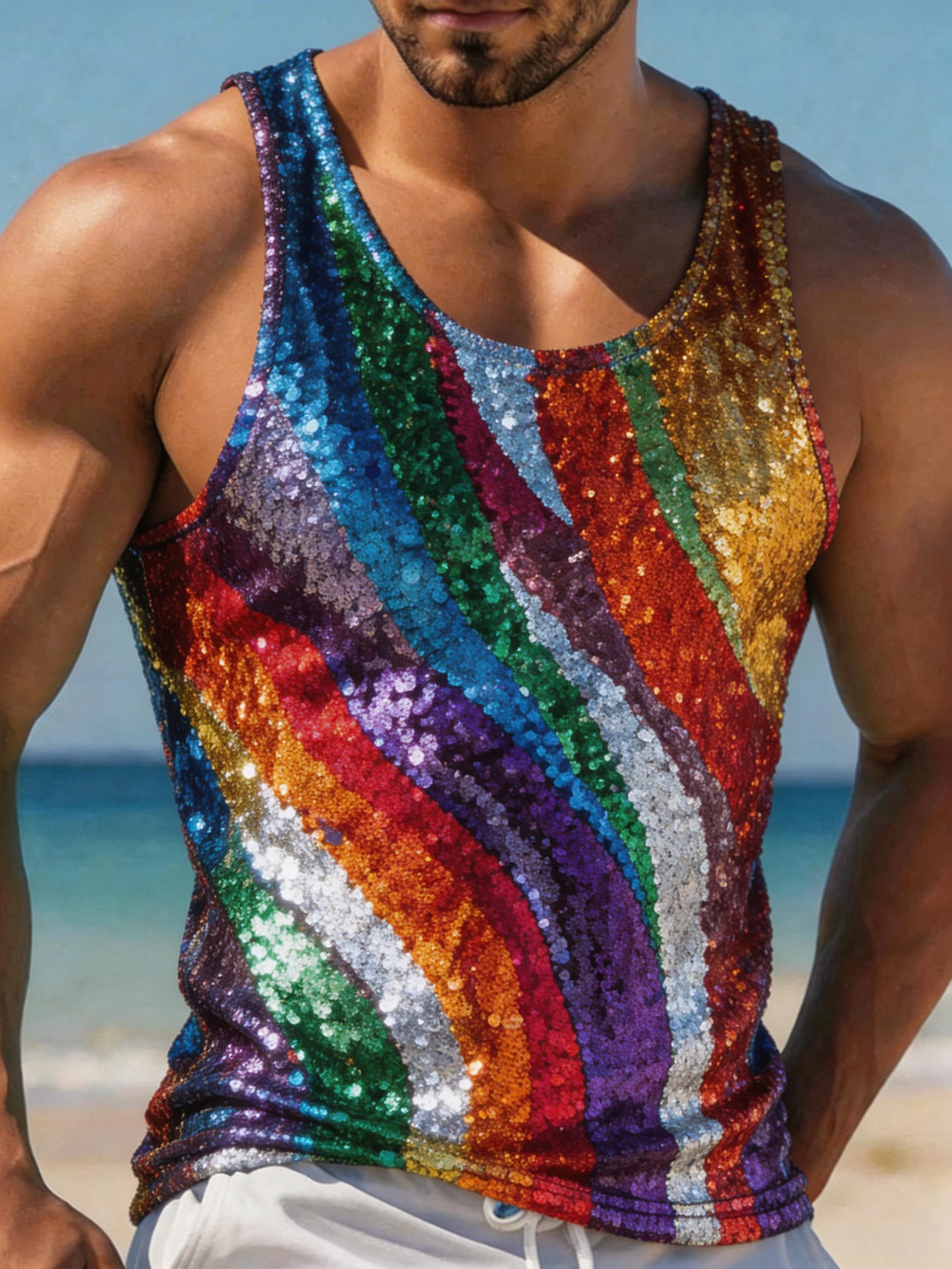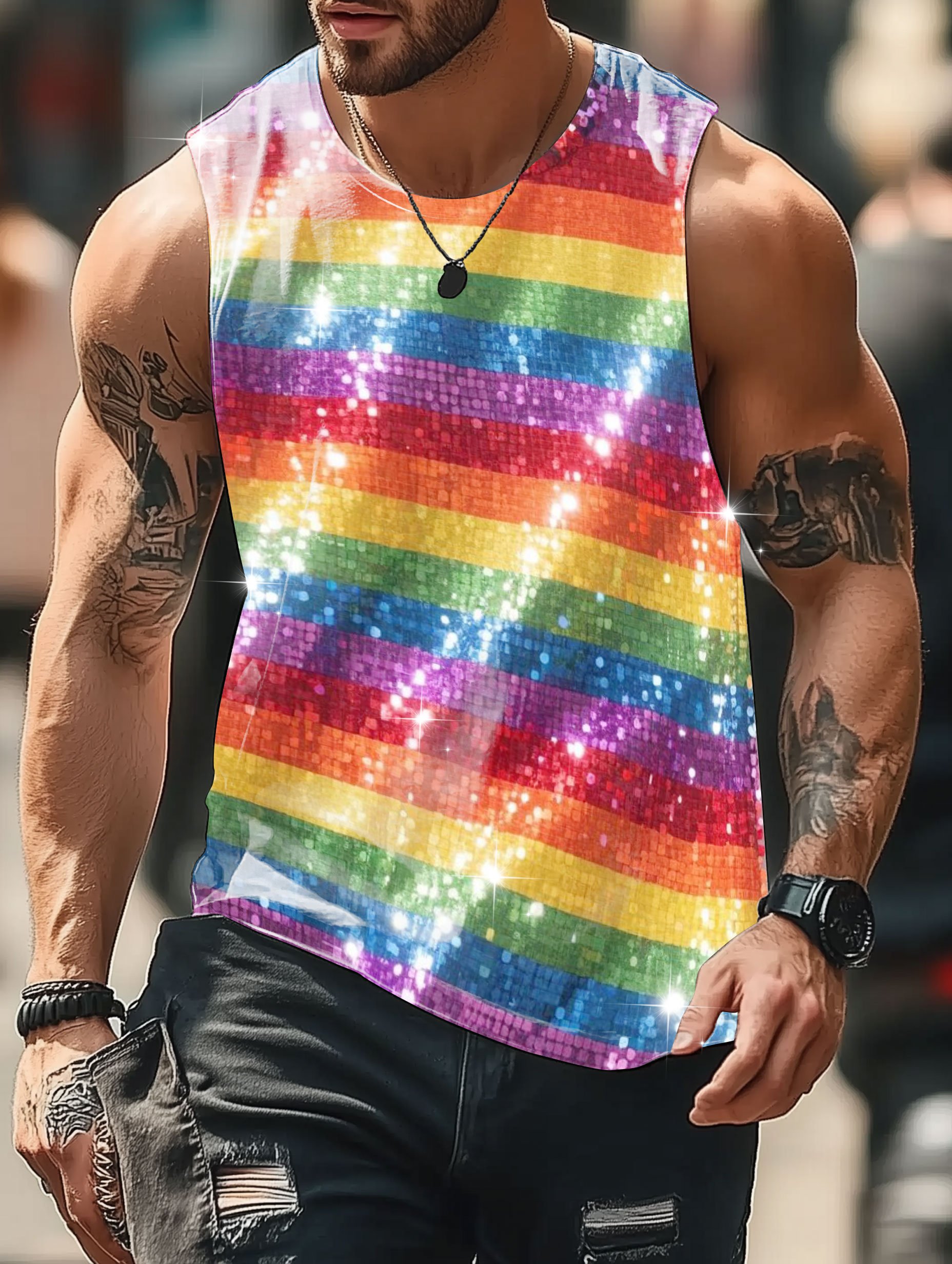 Men's Pride Month Rainbow Sequin Print Tank Top