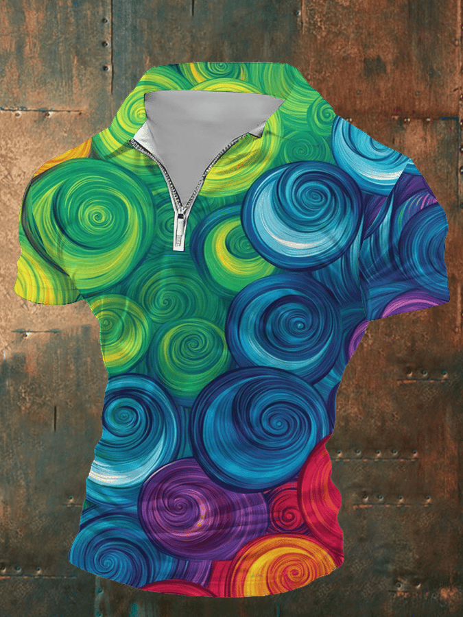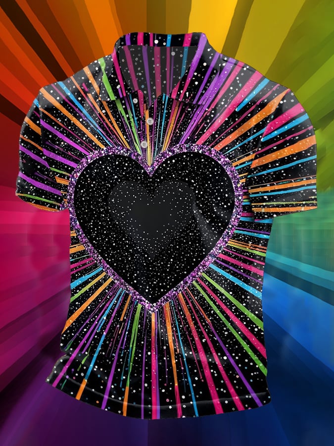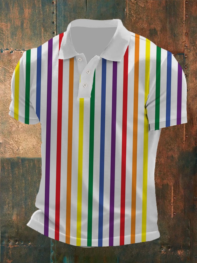 Men's Retro Lgbt Gay Rainbow Print Lapel Polo Shirt