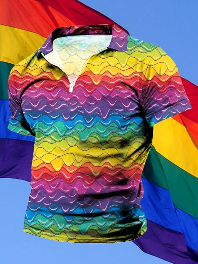 Men's Retro Rainbow Shiny Ripples LGBT Gay Print Polo Shirt