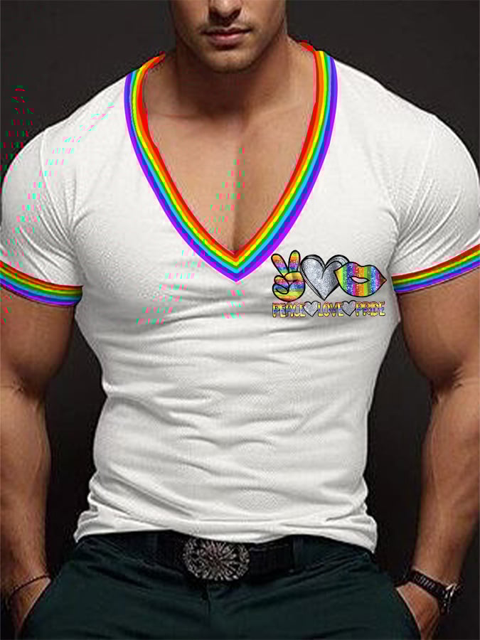 Men's Casual Gay Pride Month Rainbow Print V-Neck Short Sleeve T-Shirt