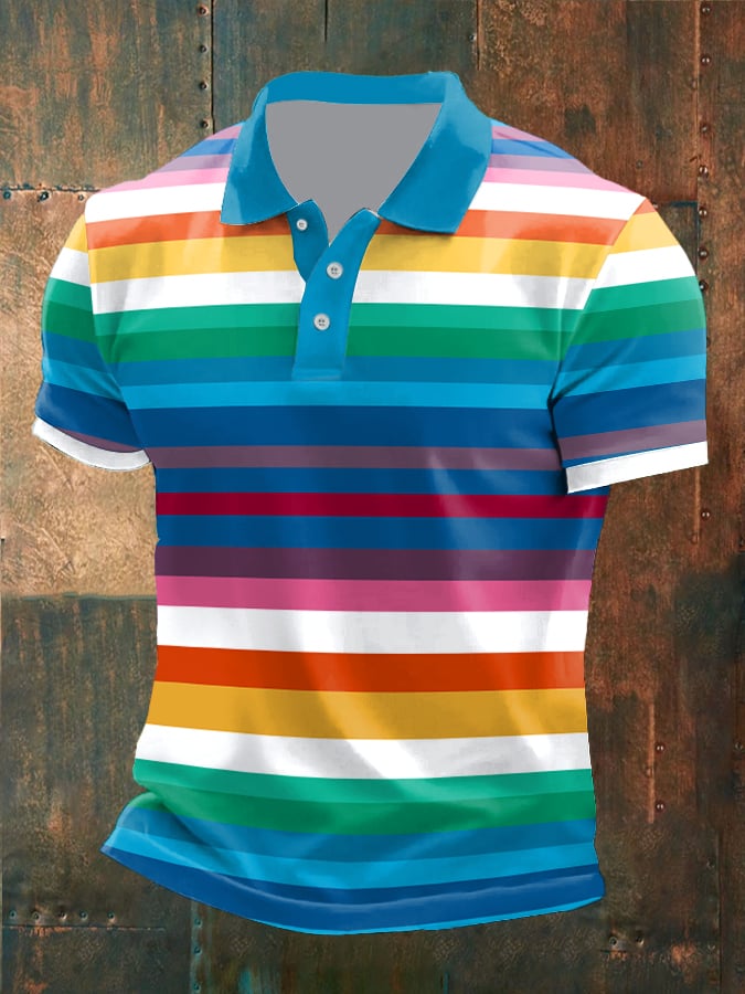Men's Rainbow Short Sleeve Casual POLO Shirt