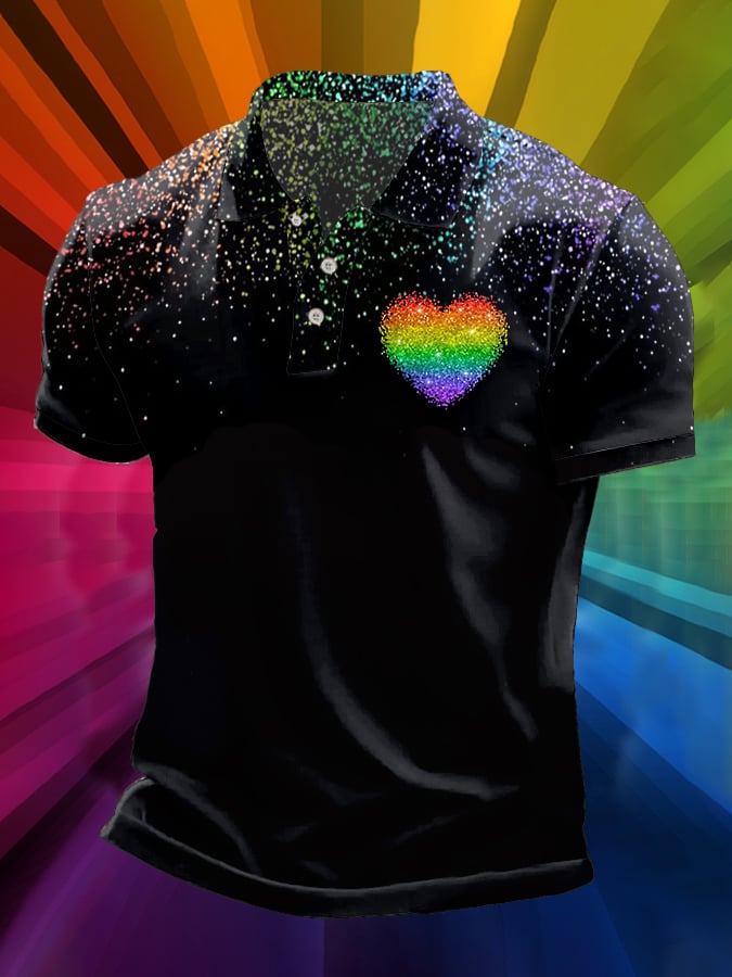 Men's Gay Pride Print Casual Short Polo Shirt