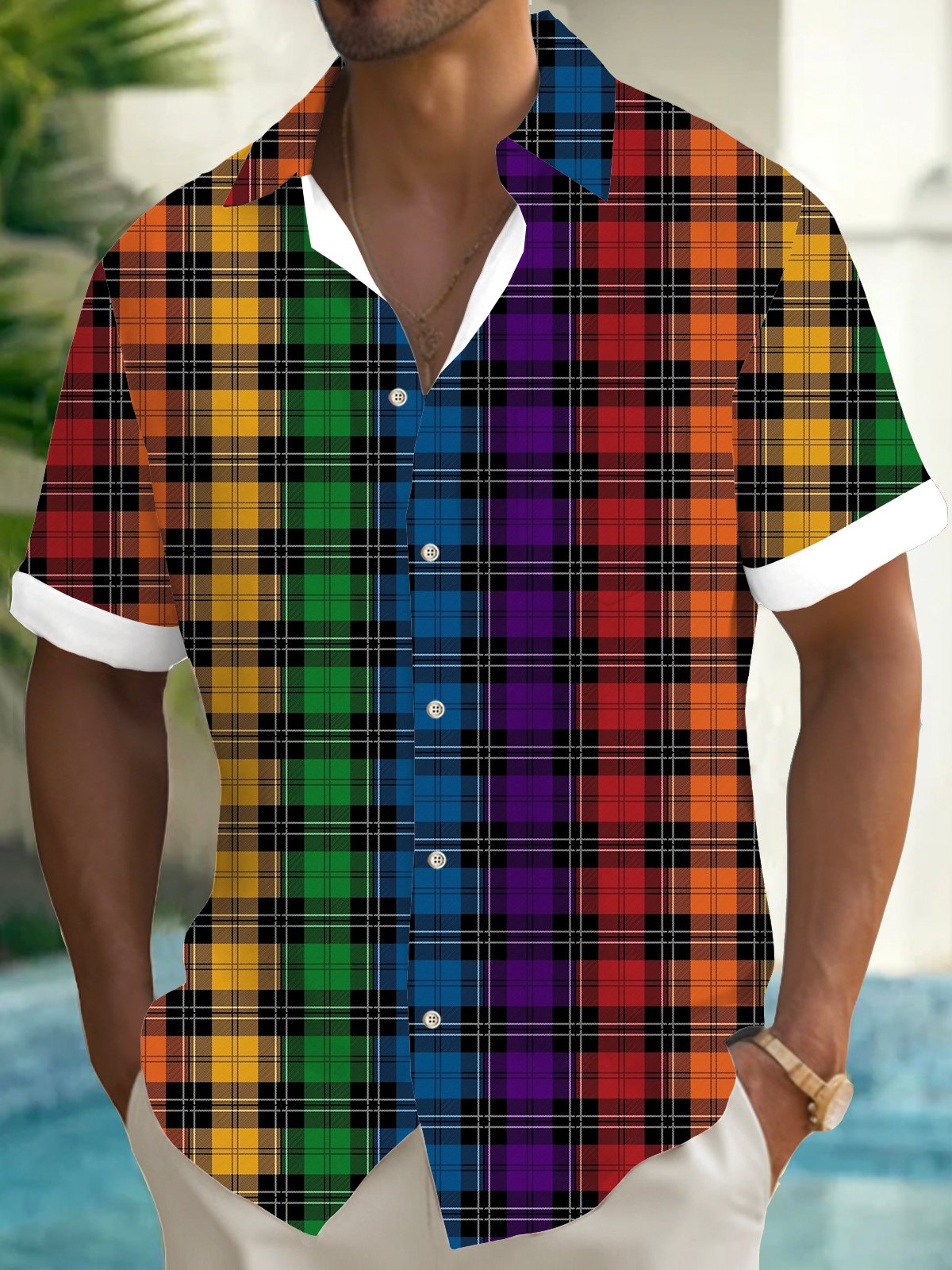Men's Casual Pride Month Plaid Print Short Sleeve Shirt