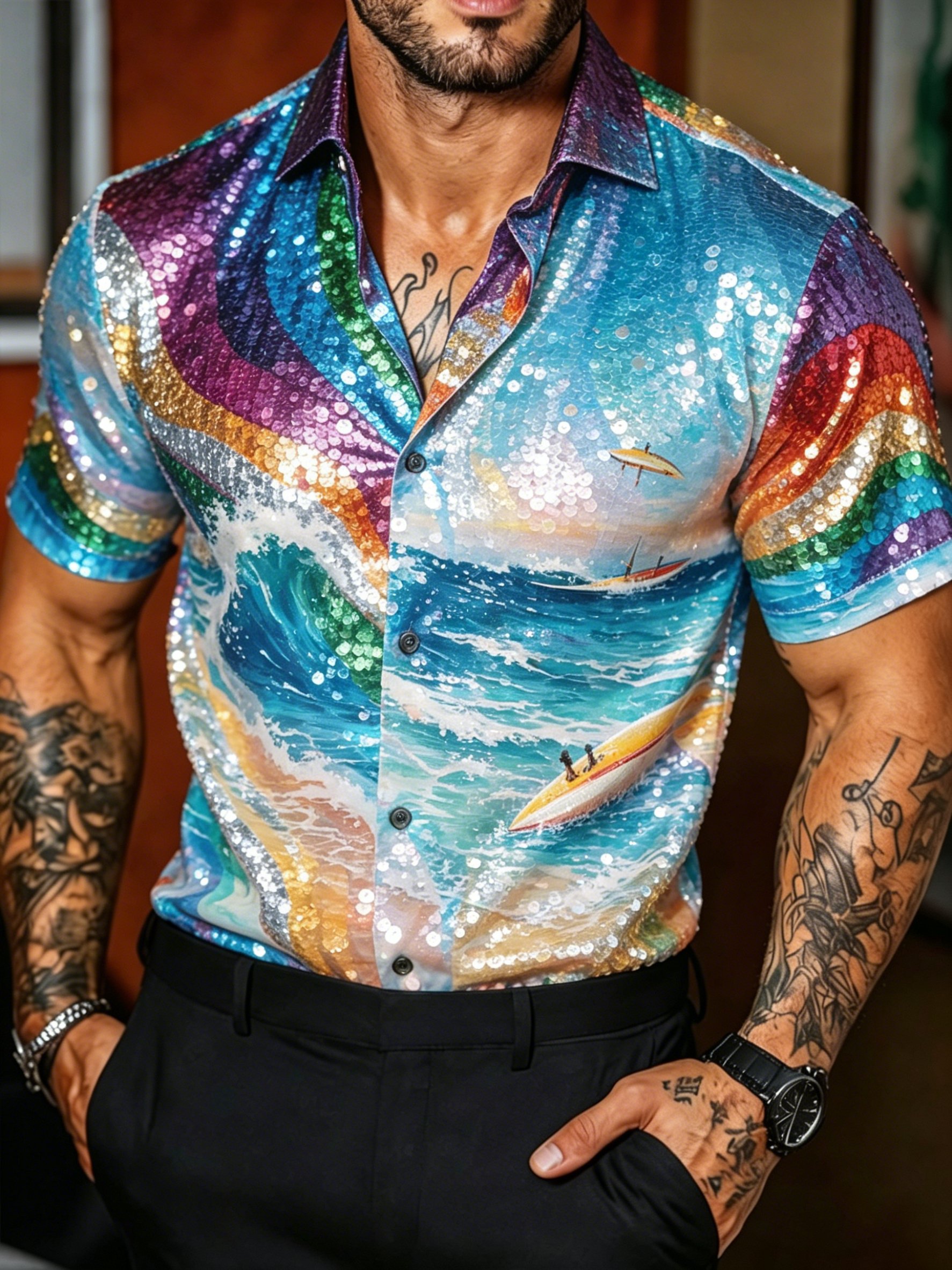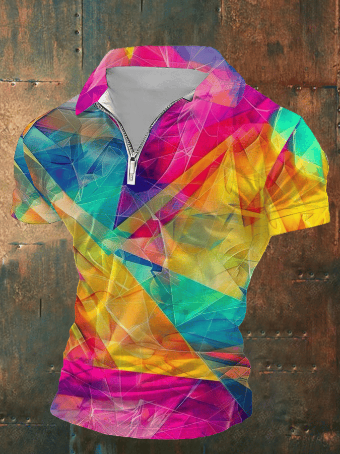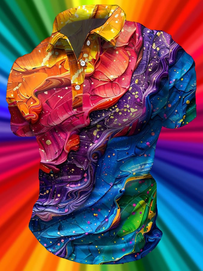 Men's Retro Rainbow Shiny Ripples LGBT Gay Print Polo Shirt