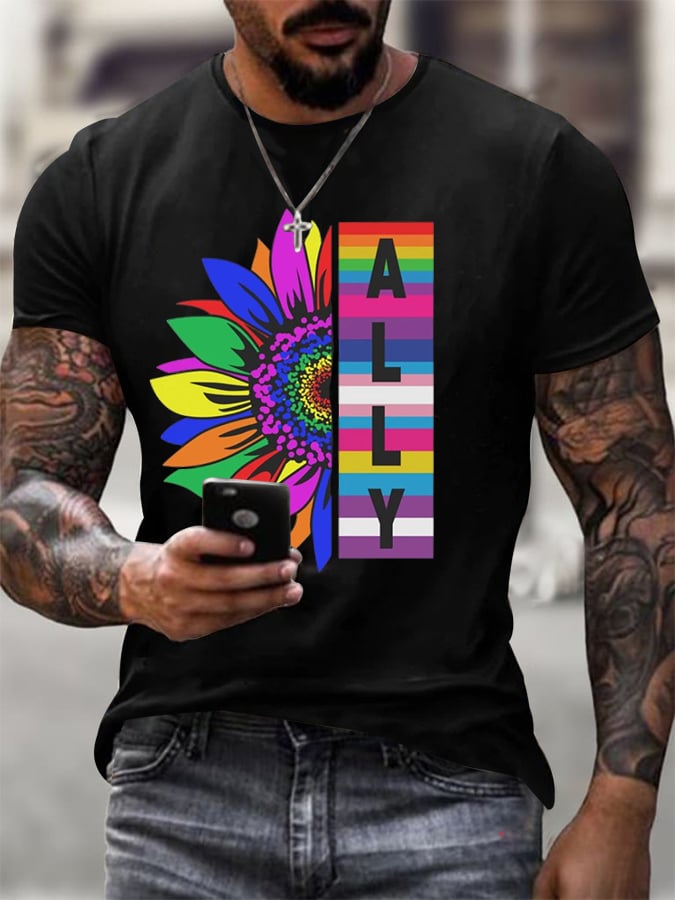 Men's Pride Month Rainbow Print Crew Neck T-Shirt