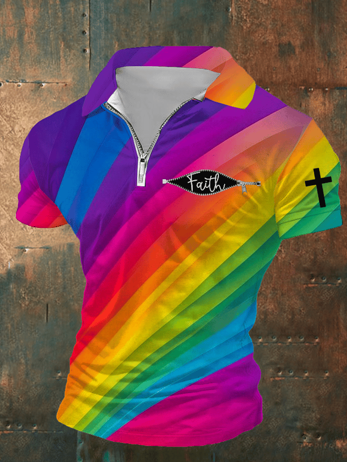 Men's Pride Month Rainbow Printed Knitted Pullover Polo Shirt Top