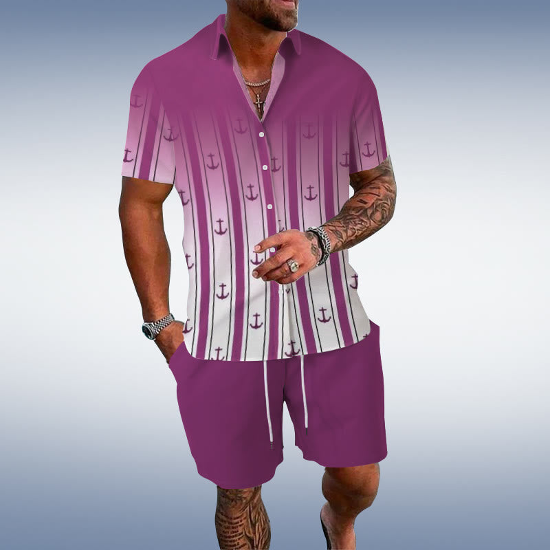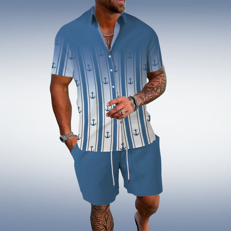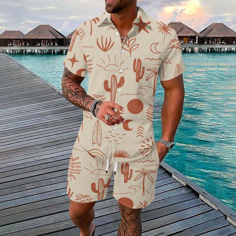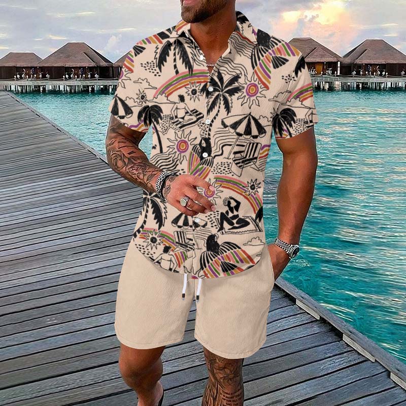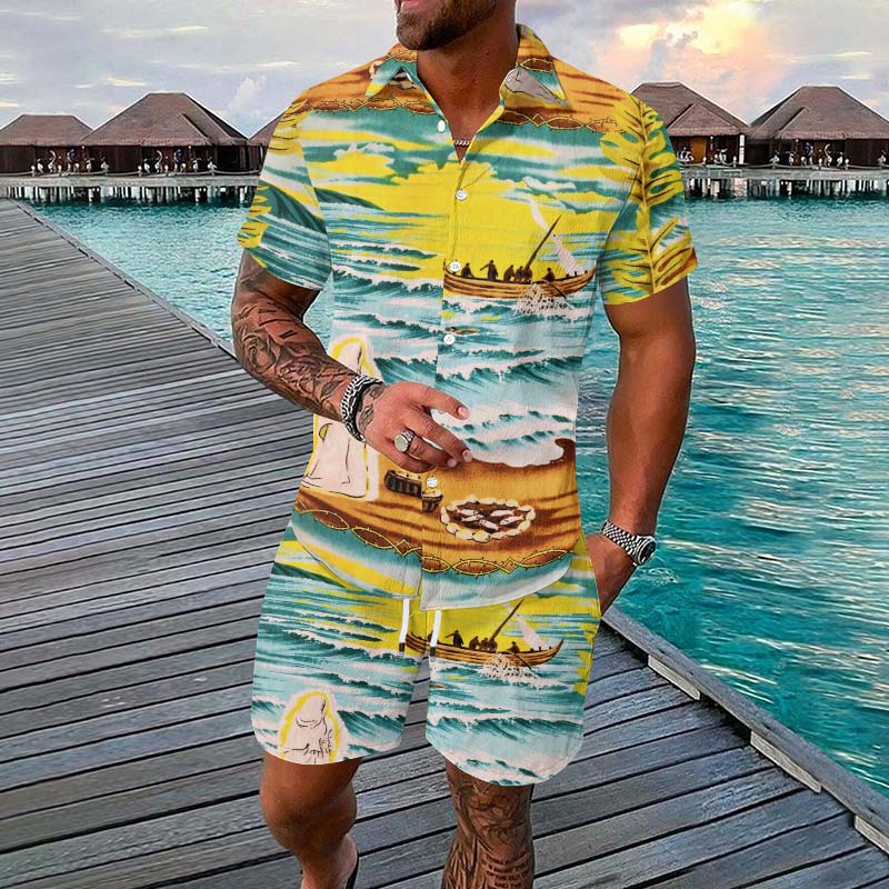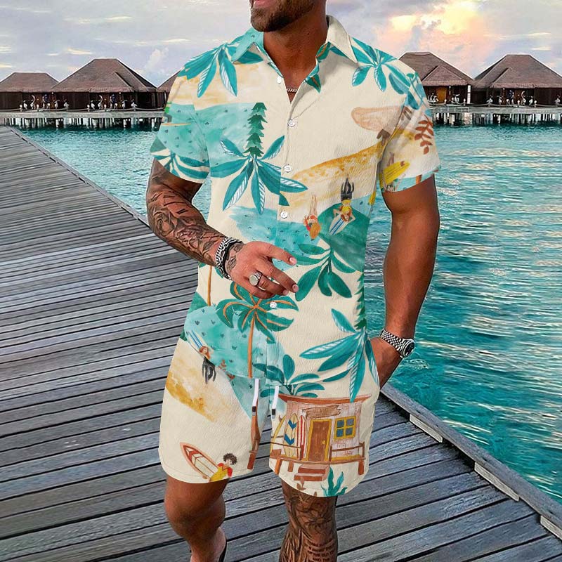 Vacation Summer Island Printed Short-sleeved Casual Shirt Set