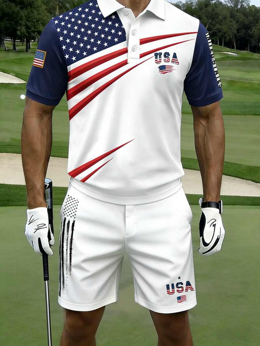 US 250th Anniversary Print Men's Polo Shirt and Shorts Sets