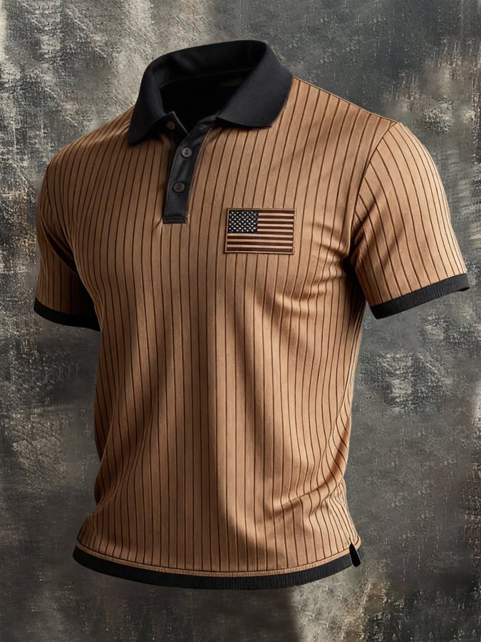 Men's Retro Ribbed Color-Block "Patriot" Polo-Collar Casual T-Shirt
