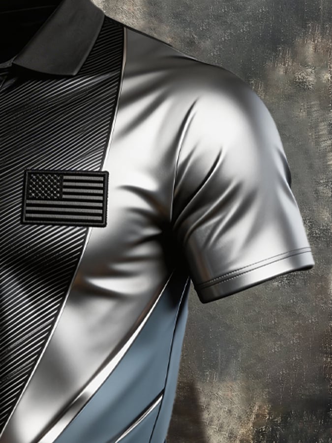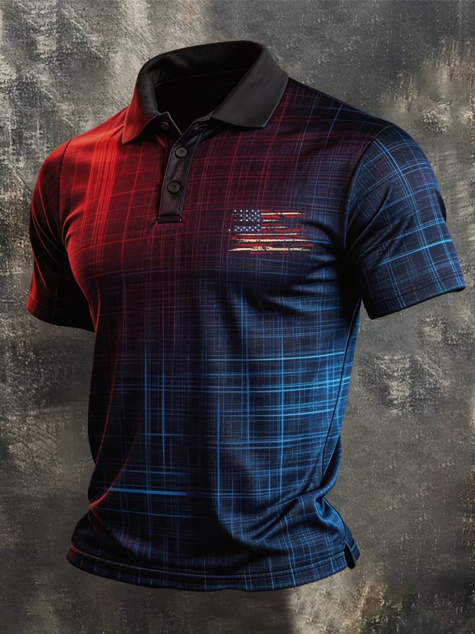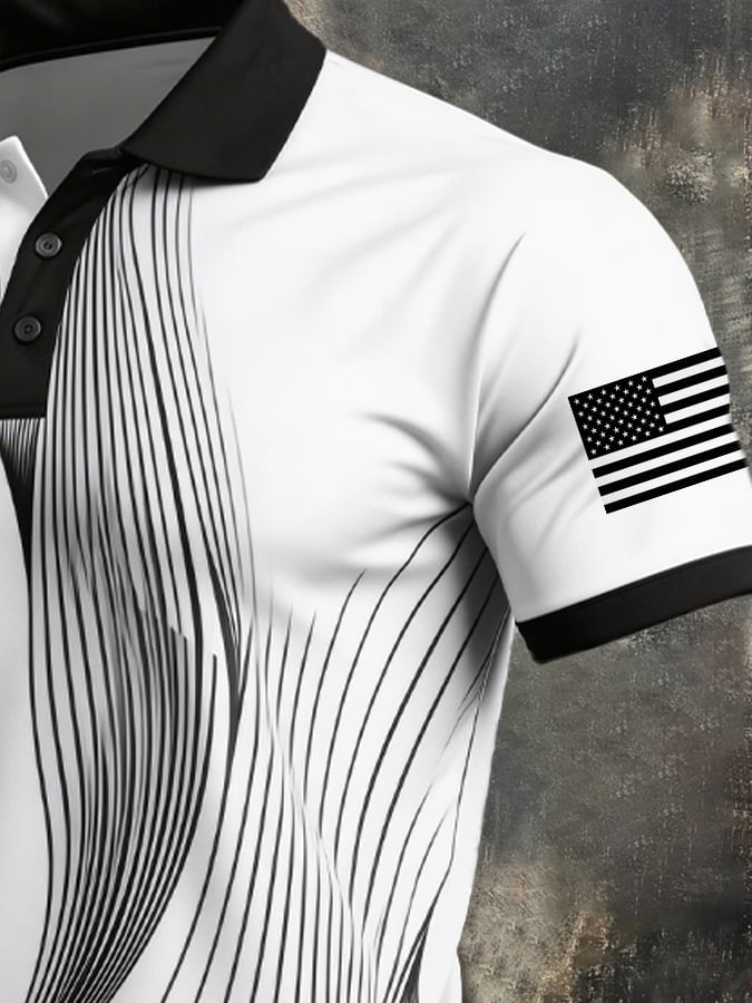 Men's Retro Patriot Color Block Polo Collar Short Sleeve