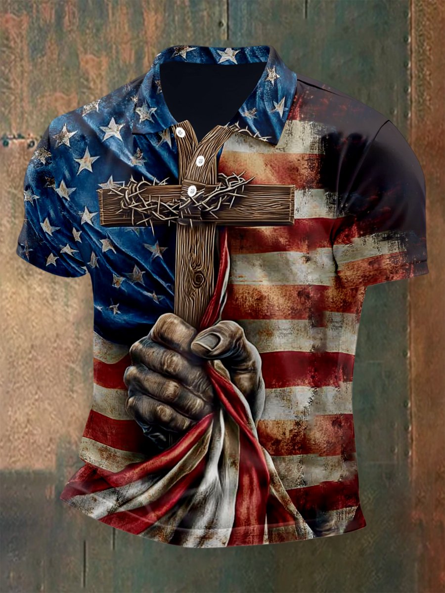 Men's Retro 250th Anniversary USA Independence Day Cross Print Polo Shirt