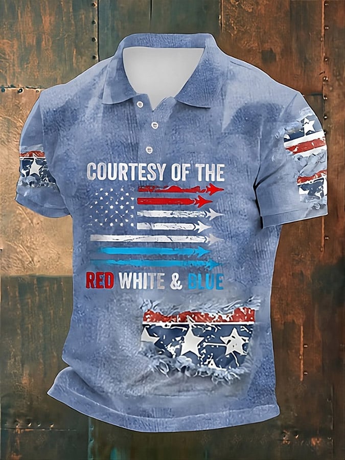 Men's 250th Anniversary National Flag Print Casual Waffle Fabric Polo Shirt