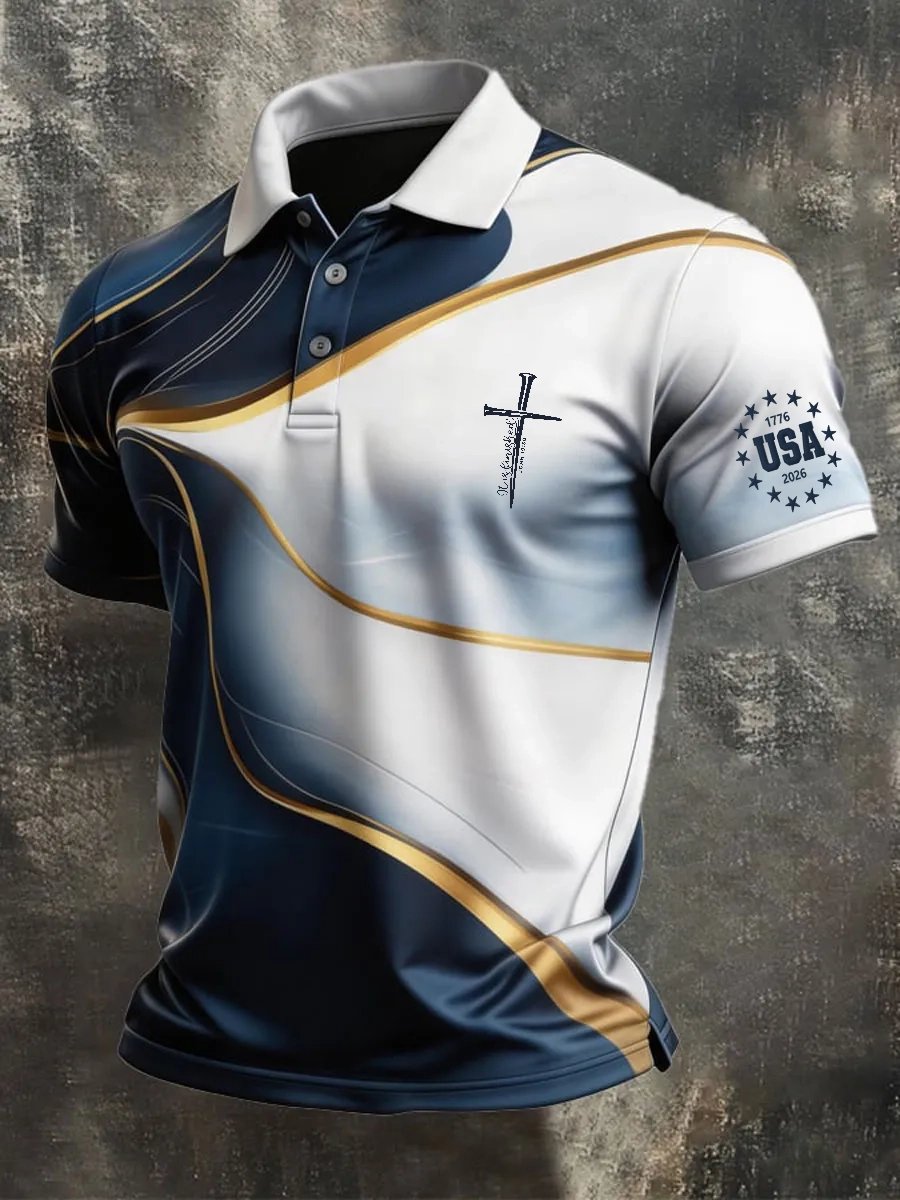 (10308) Men's Faith 250th Anniversary Print Short-Sleeve Collared Business Polo Shirt