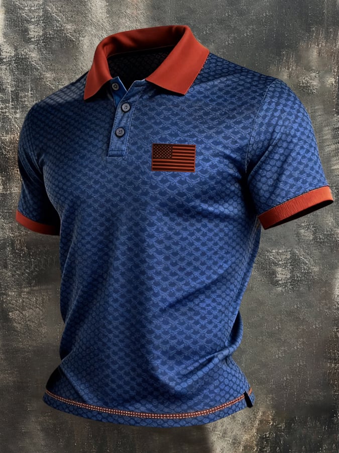 Men's Retro Patriotic Color-Block Short-Sleeve Polo Shirt