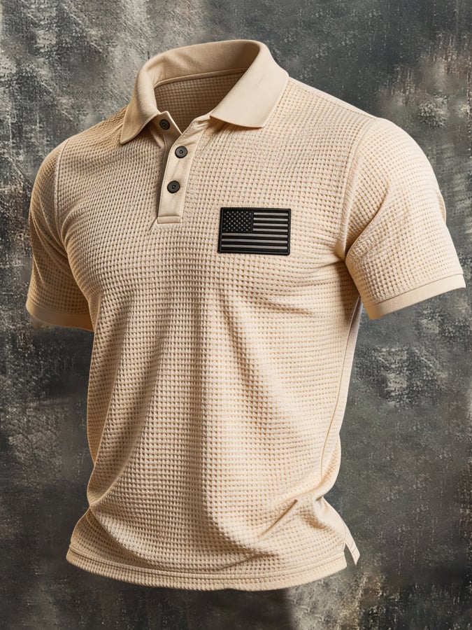 Men's Vintage 3D Waffle-Knit Fabric "Patriot" Polo Shirt
