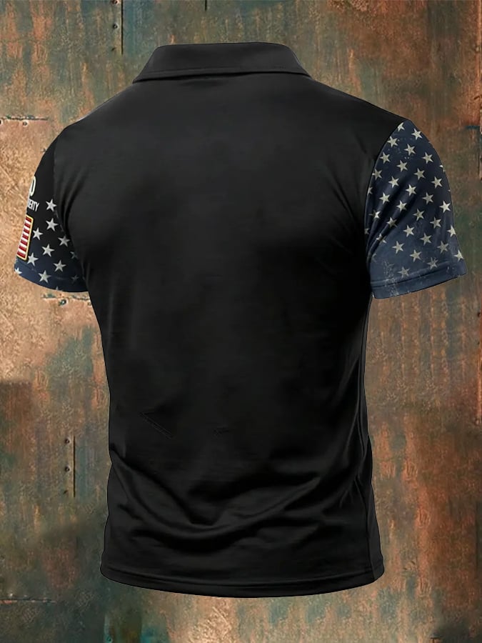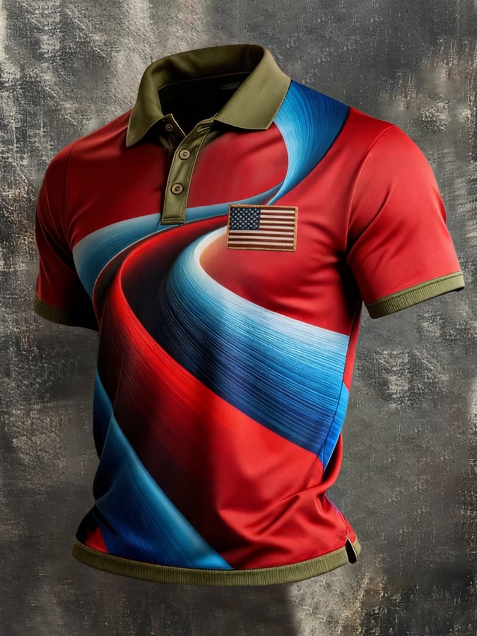 Men's Retro Patriotic Color-Block Short-Sleeve Polo Shirt