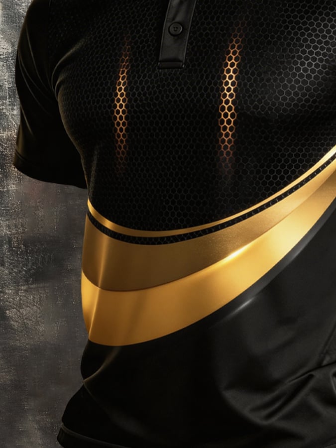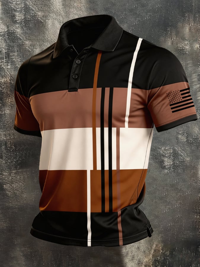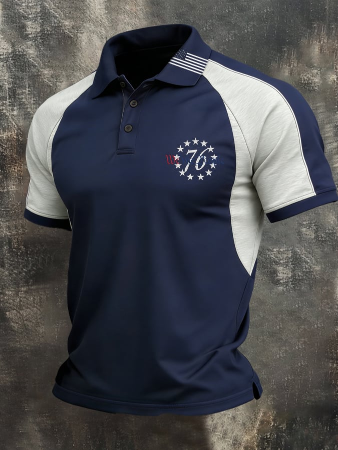 Men's Retro Patriot Color Block Polo Collar Short Sleeve