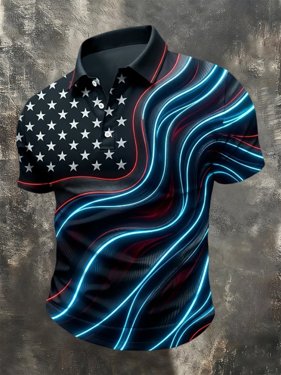 Men's 250th Anniversary National Flag Print Casual Polo Shirt