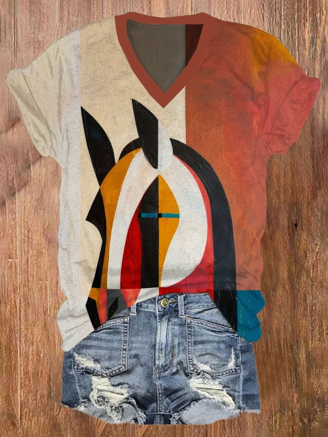 Women's Animal Horse Art Print V-Neck Short Sleeve T-Shirt