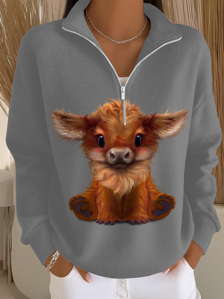 Women's Highland Cattle Art Print Casual Sweatshirt