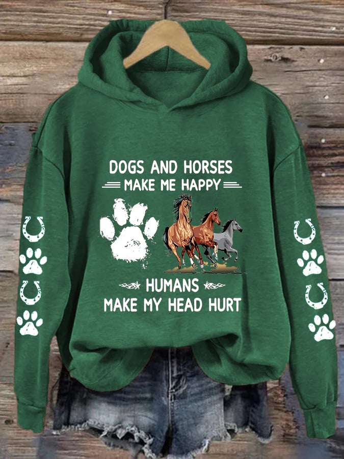 🐴Women's Horses & Dogs Make Me Happy Humans Make My Head Hurt Dog Lovers Printed Casual Hoodie