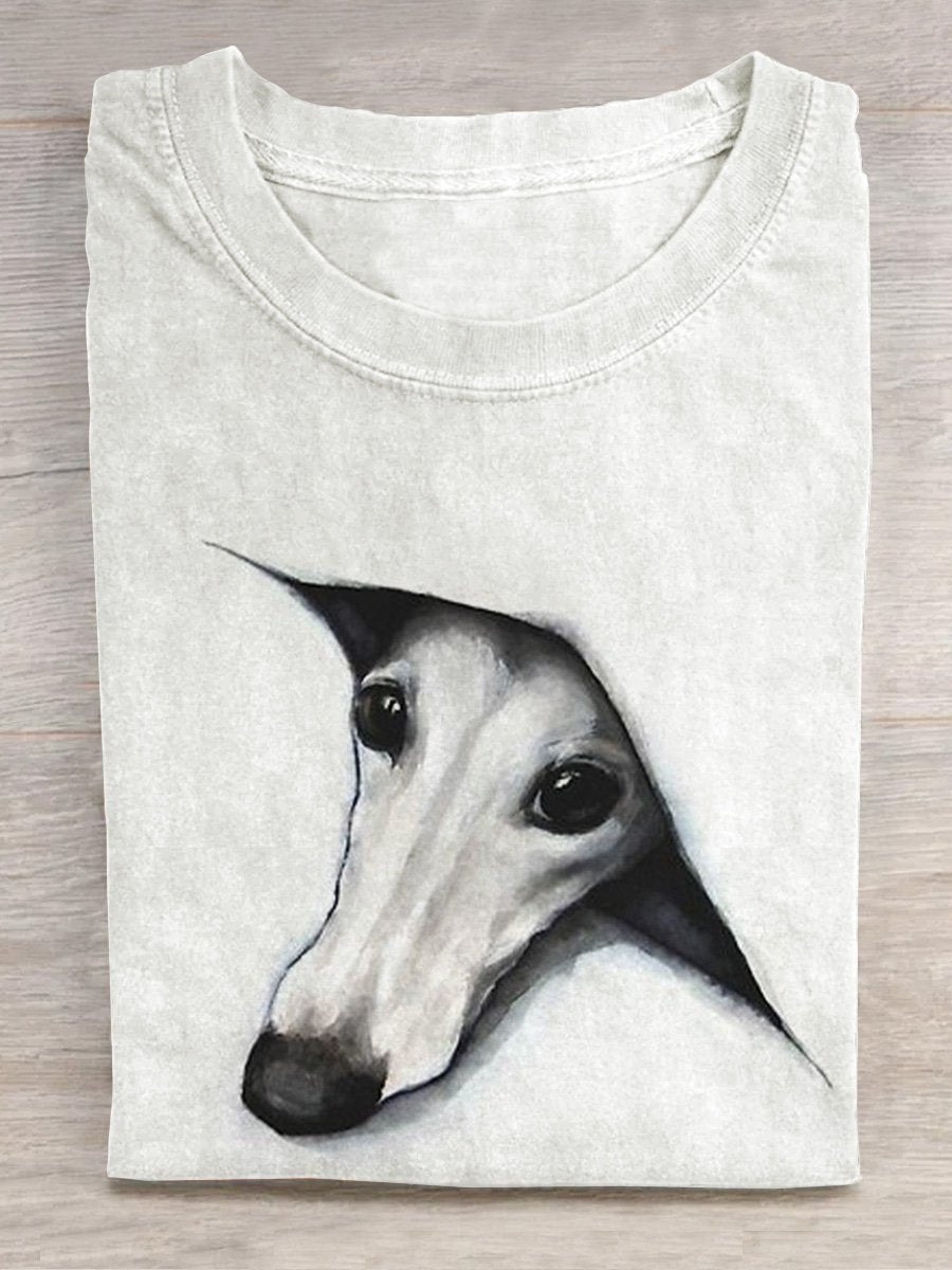 Greyhound Cute Dog Lover Art Casual Print T-shirt
