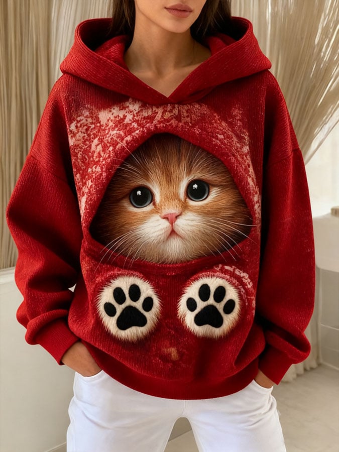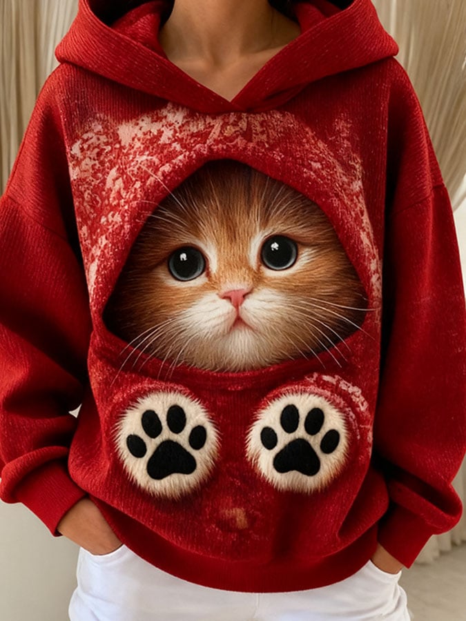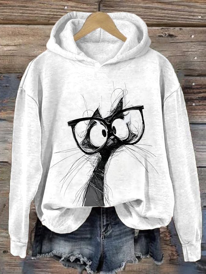 Women's Artistic Hand-Painted Animal Cat Print Hoodie