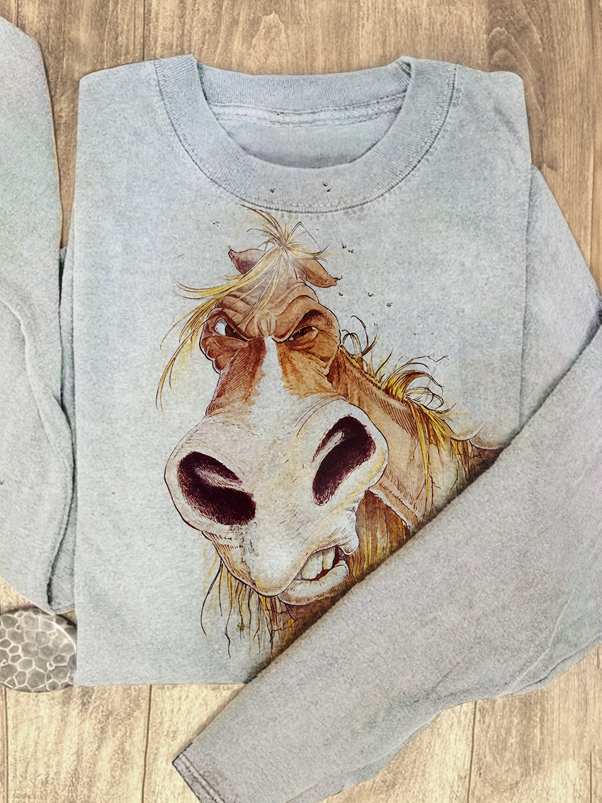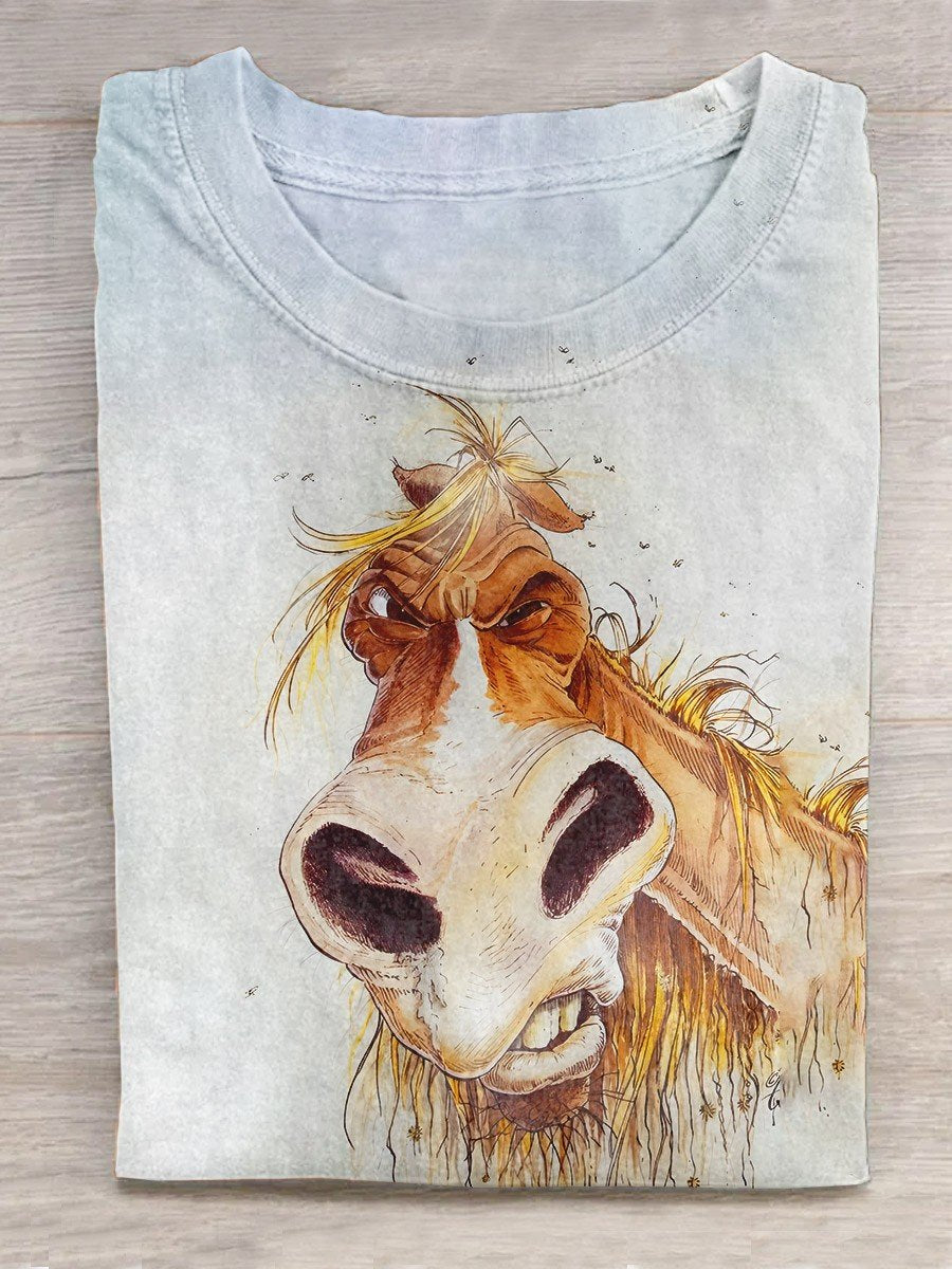 Horse With Funny Expression Animal Art Print Casual T-Shirt