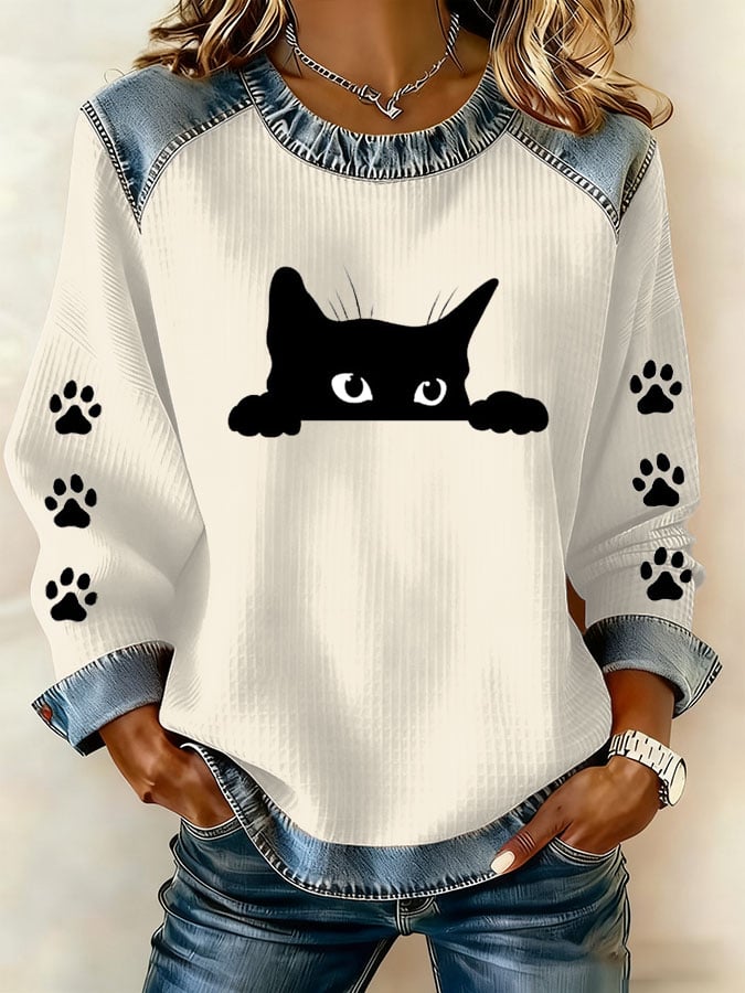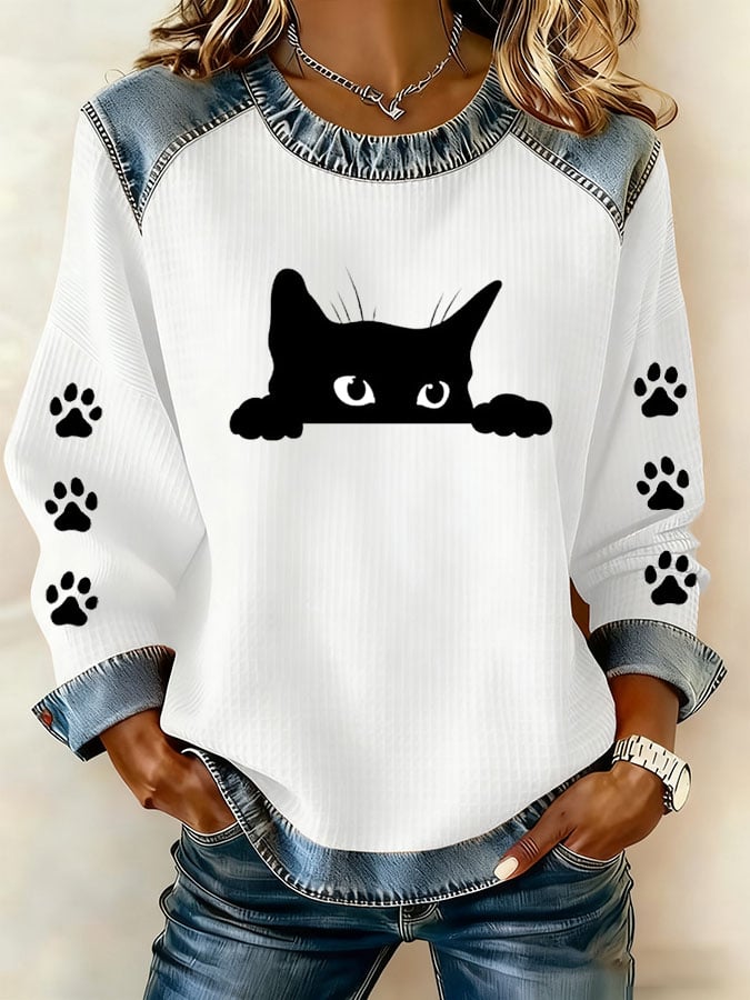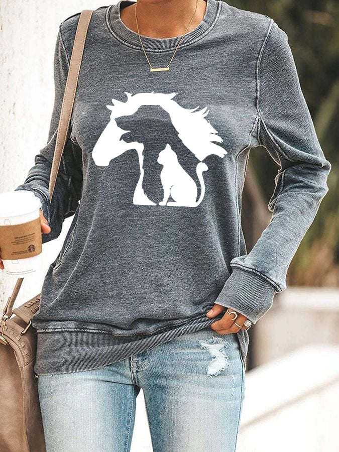 Women's Fun And Cute Animal Cat Print Sweatshirt