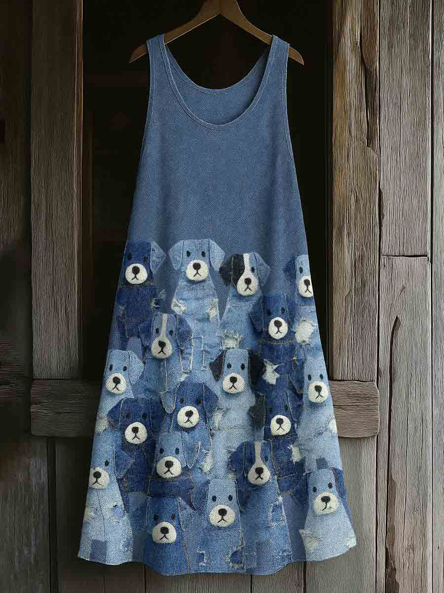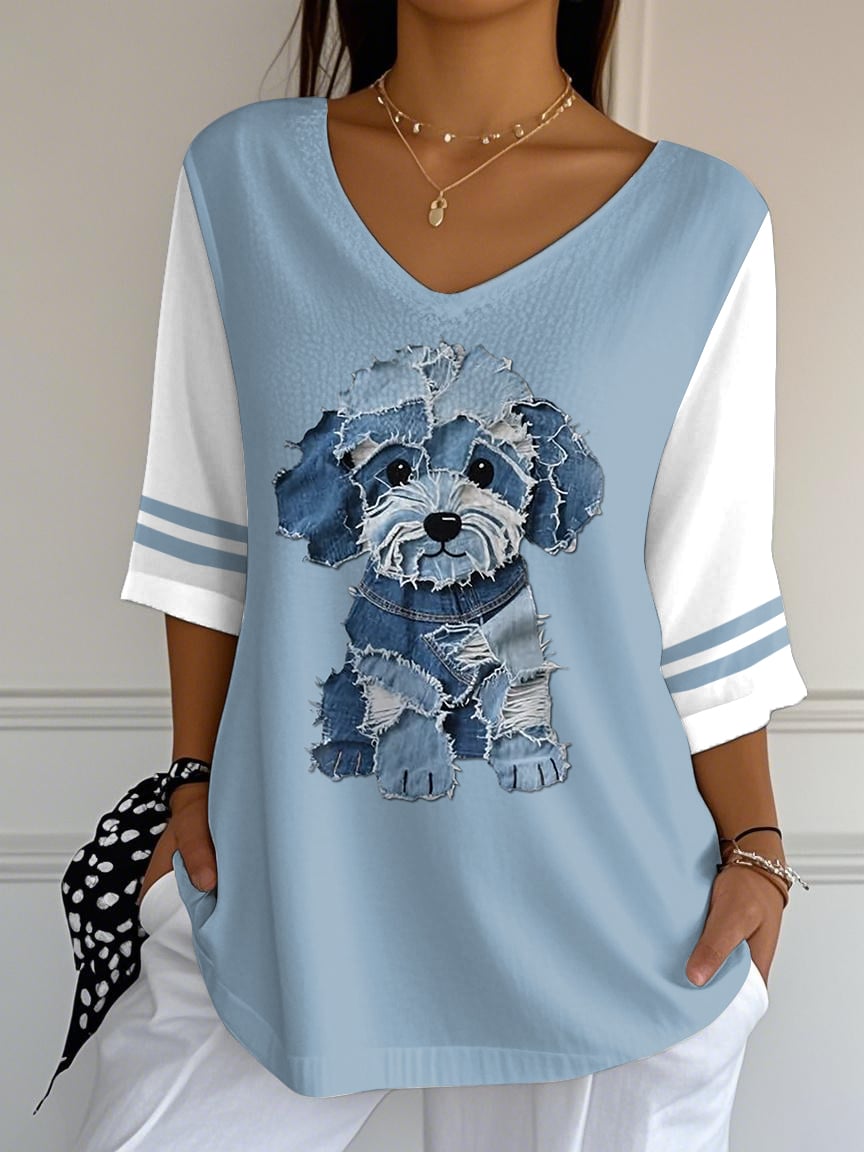 Women's Retro Funny Animal Dog Print Mid Sleeve T-Shirt