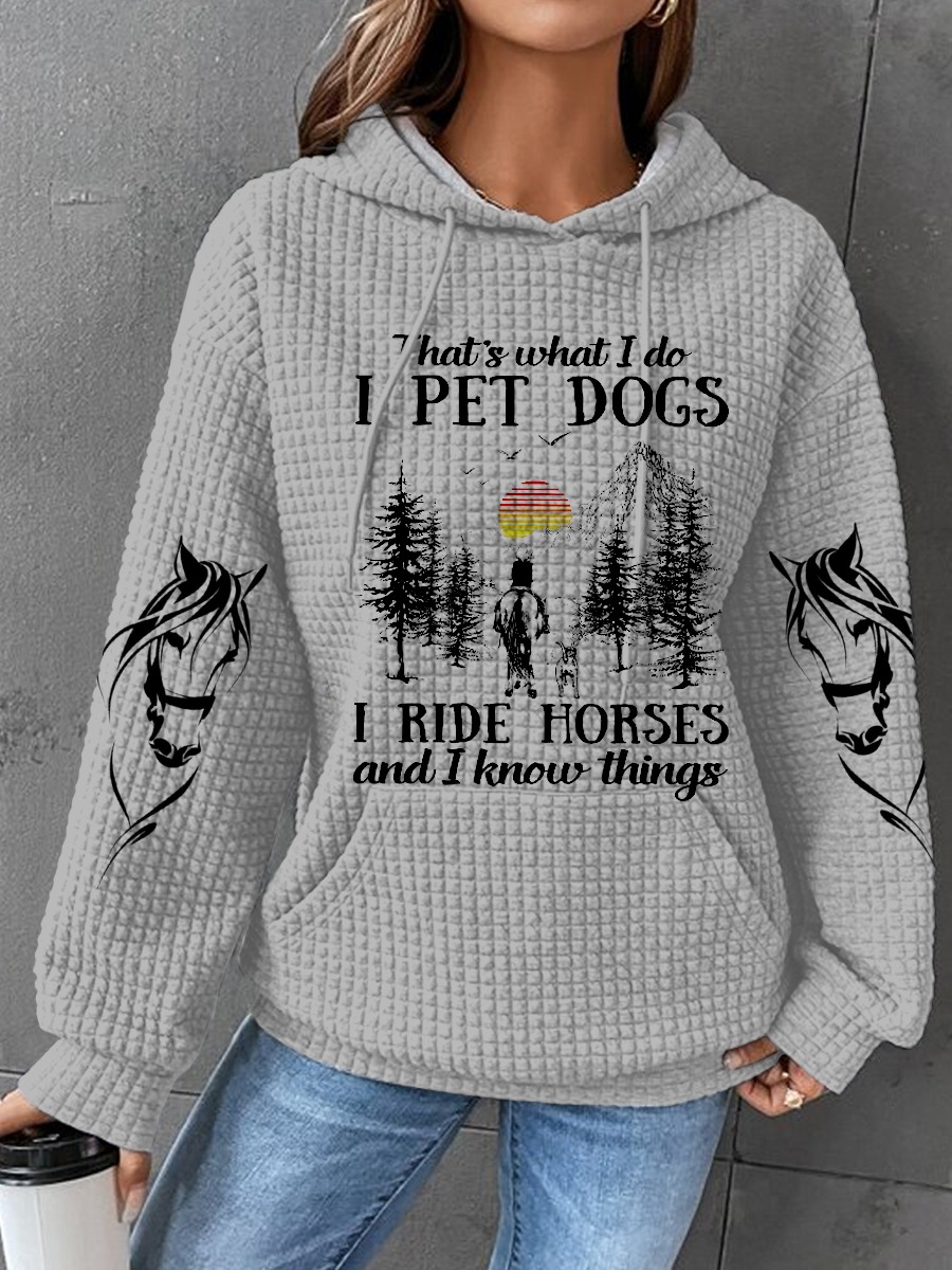 I Pet Dogs I Ride Horses Print Waffle Hoodie