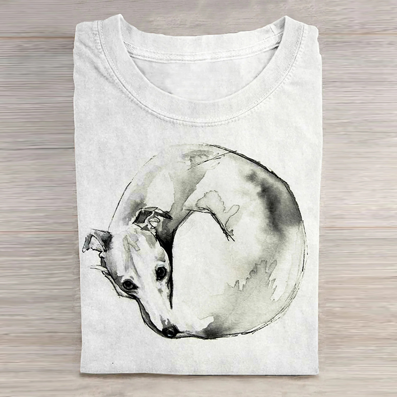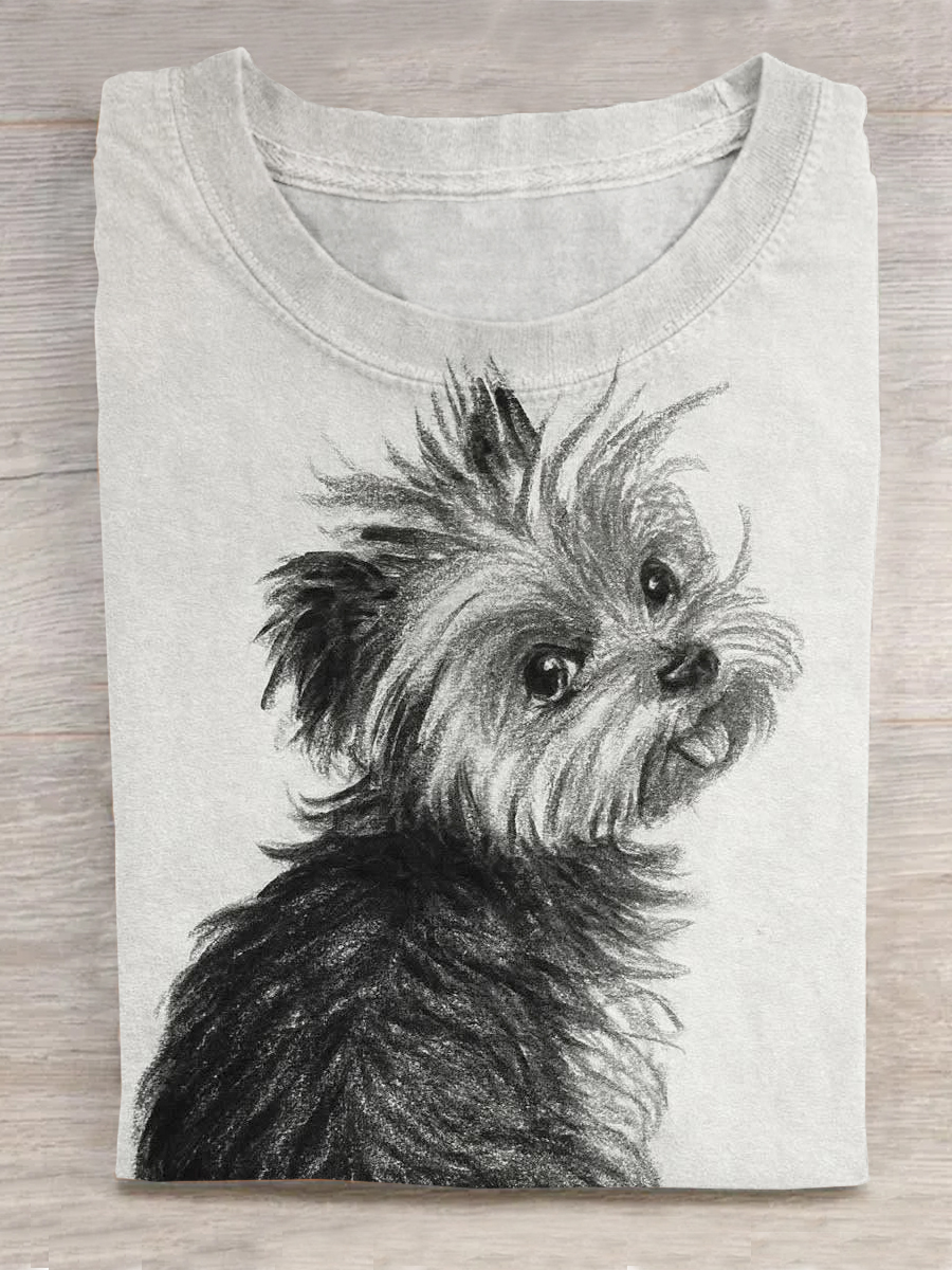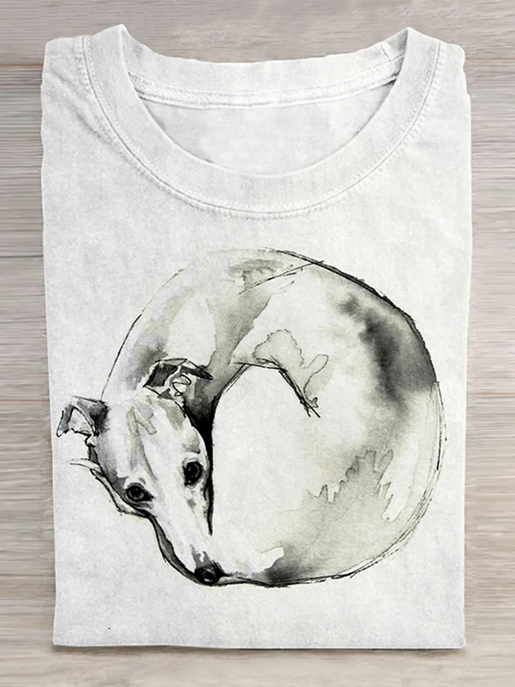 Dog Art Print Casual Short Sleeve Round Neck T-Shirt