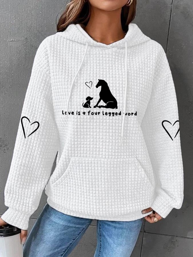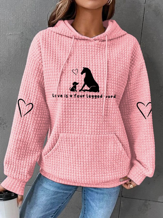 🐴Women's Love Is A Four Legged Word Dog And Horse Print Waffle Hoodie