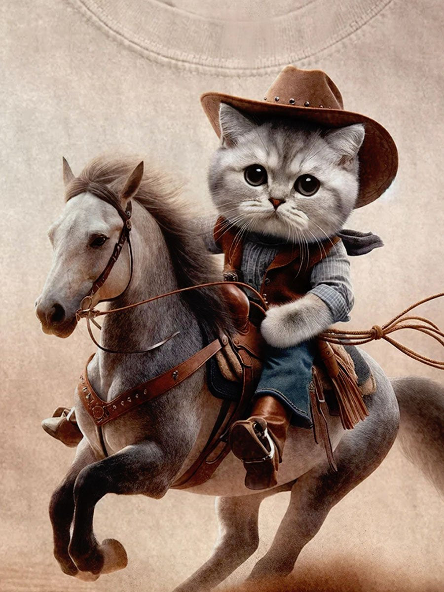 Western Cow Boy Cat Horse Animal Art Pattern Print Design T-shirt