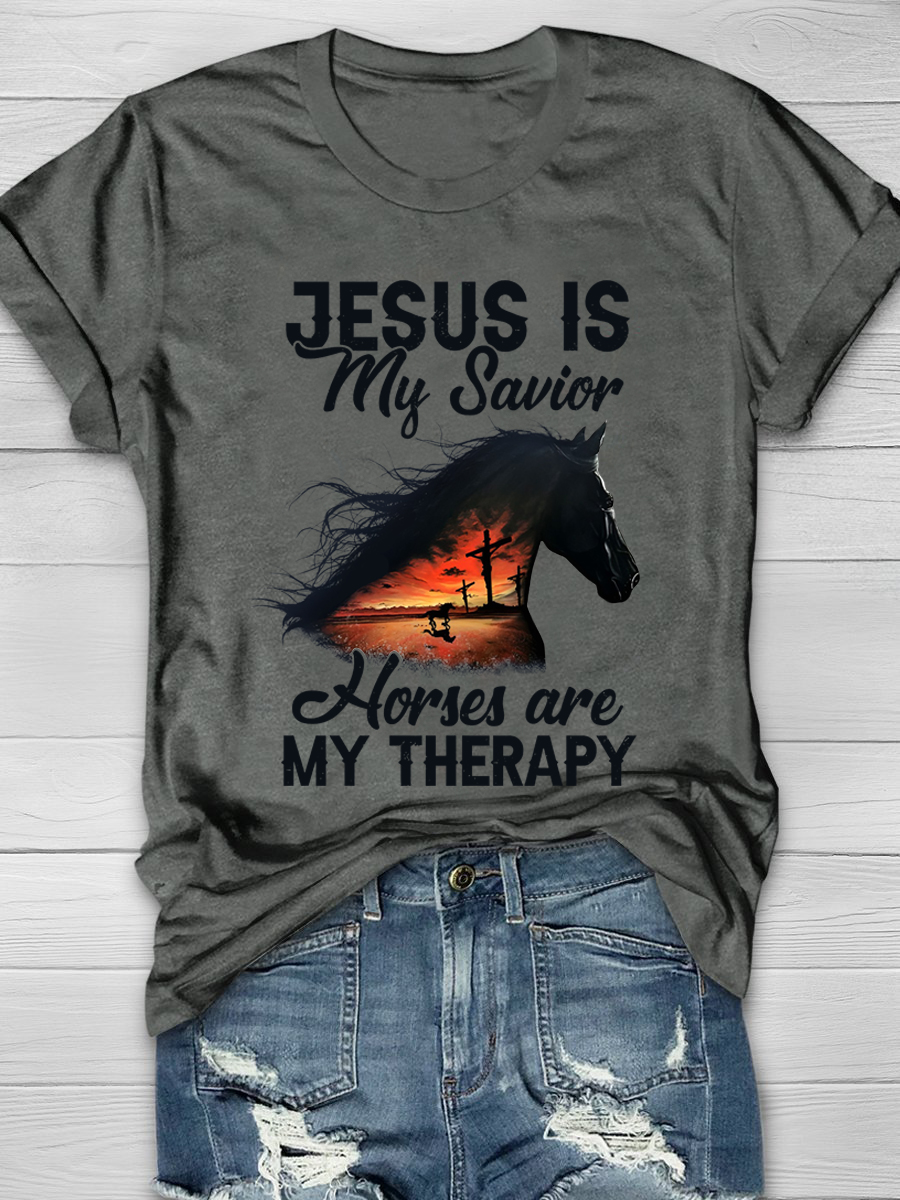 Jesus Is My Savior Horses Are My Therapy Short Sleeve T-shirt
