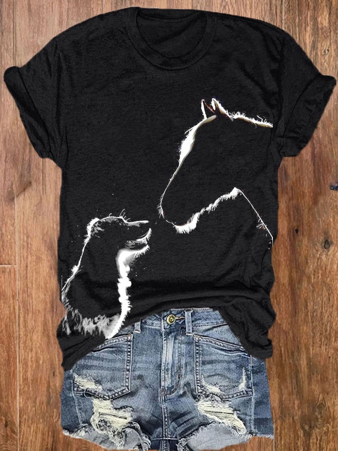 Women's Horse and Dog Silhouette Print T-shirt
