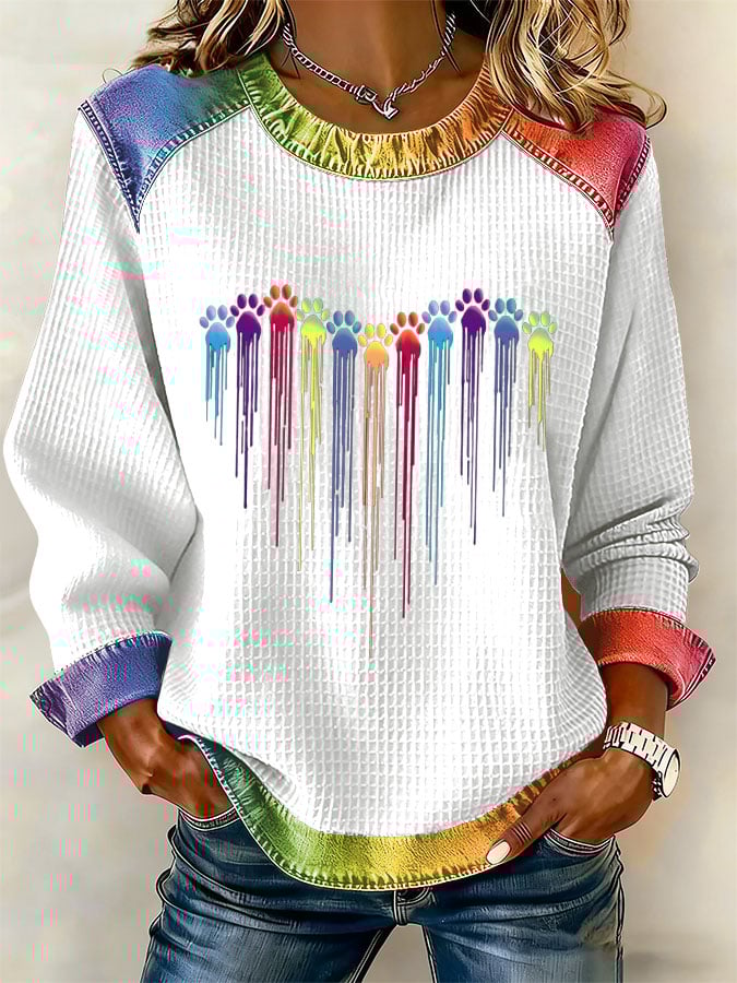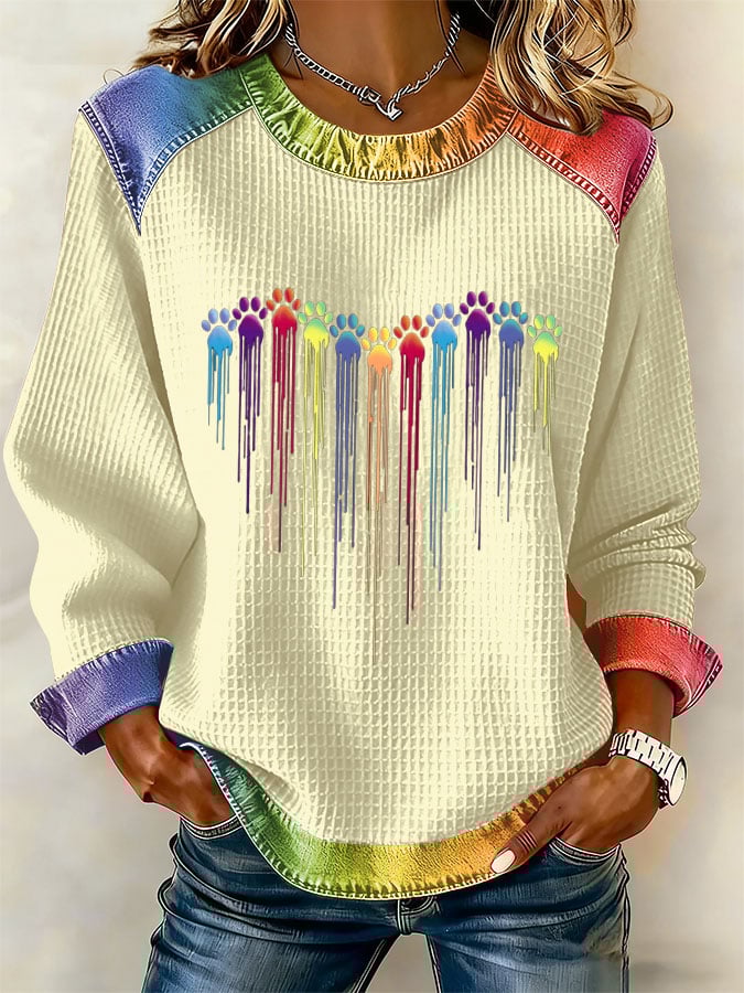Women's Colorful Dog Heart Paw Print Casual Sweatshirt