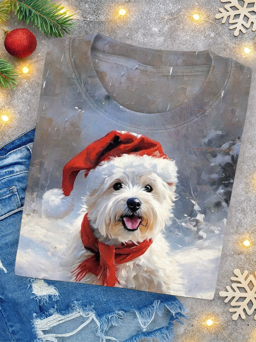 Christmas Dog Art Print Casual Short Sleeve T-Shirt