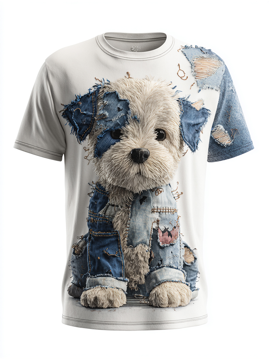 Women's Patchwork Cowboy Dogs Print Printed Blouse