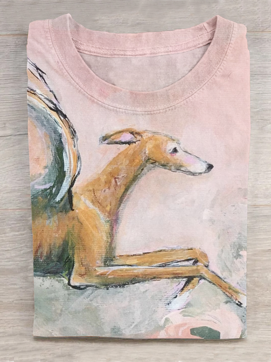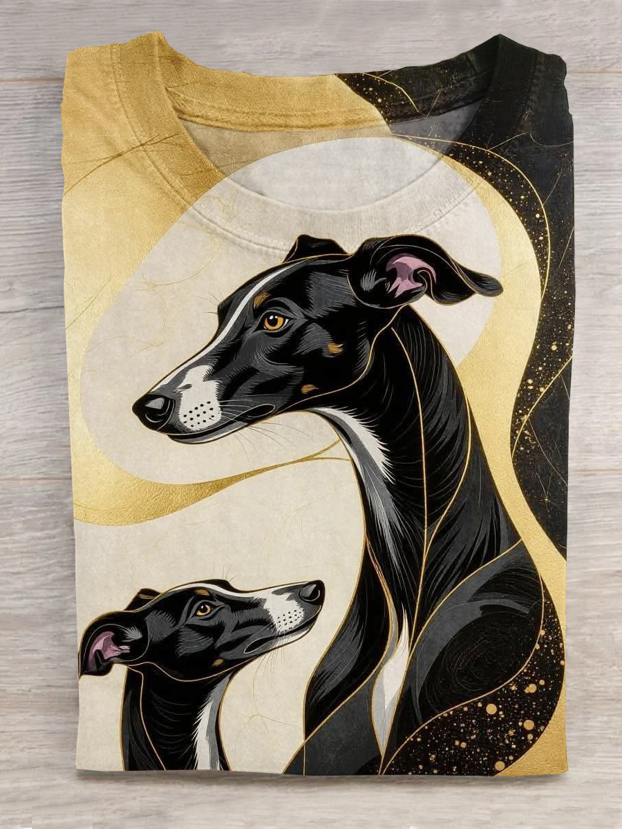 Greyhound Dog Painting Art Casaul Cotton Short Sleeve T-shirt