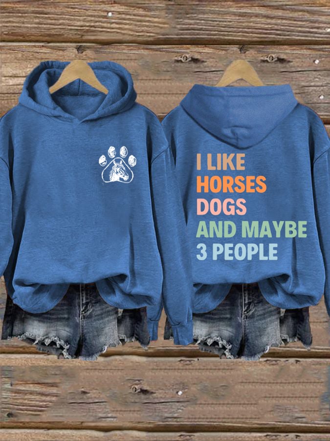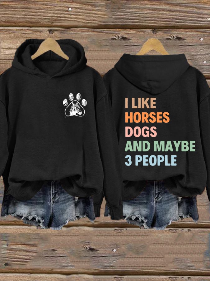 Women's I Like Horses Dogs And Maybe 3 People Printed Hooded Sweatshirt