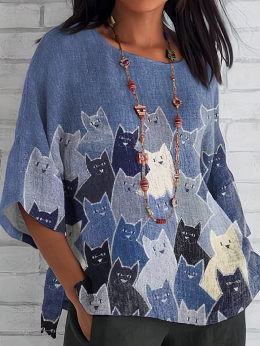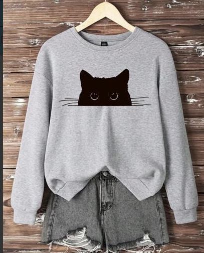 Women's Cat Art Illustration Printed Casual Sweatshirt