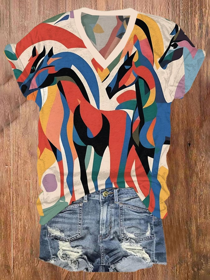 Women's Horse Art Print Short Sleeve T-Shirt