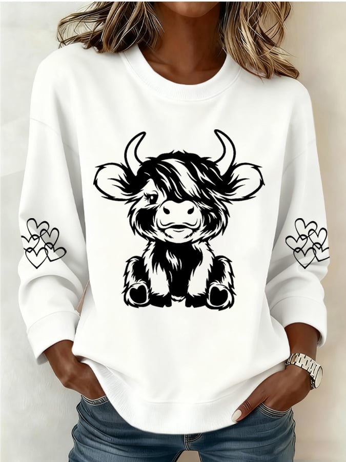 Women's Highland Cattle Print Casual Sweatshirt