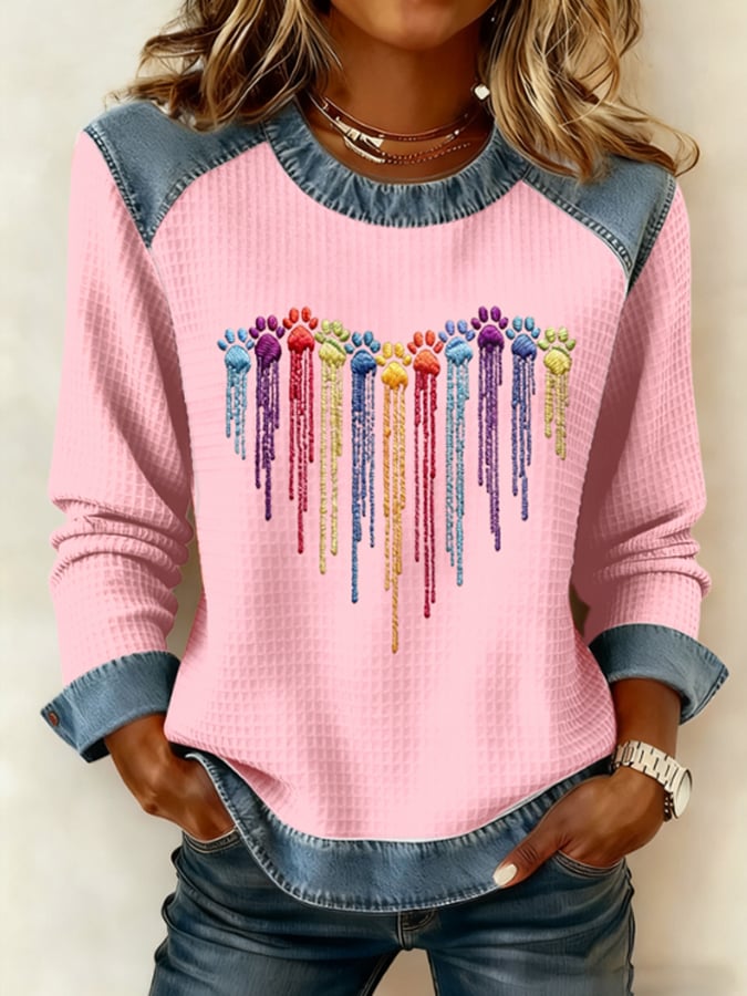 Women's Colorful Dog Heart Paw Print Casual Top