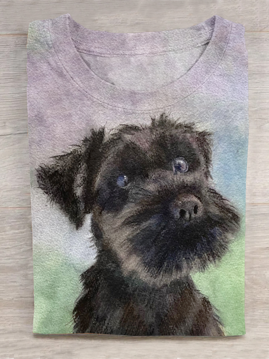 Denim Dog Art Print Casual Short Sleeve T-Shirt