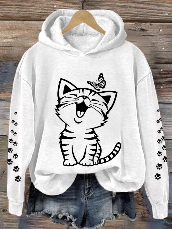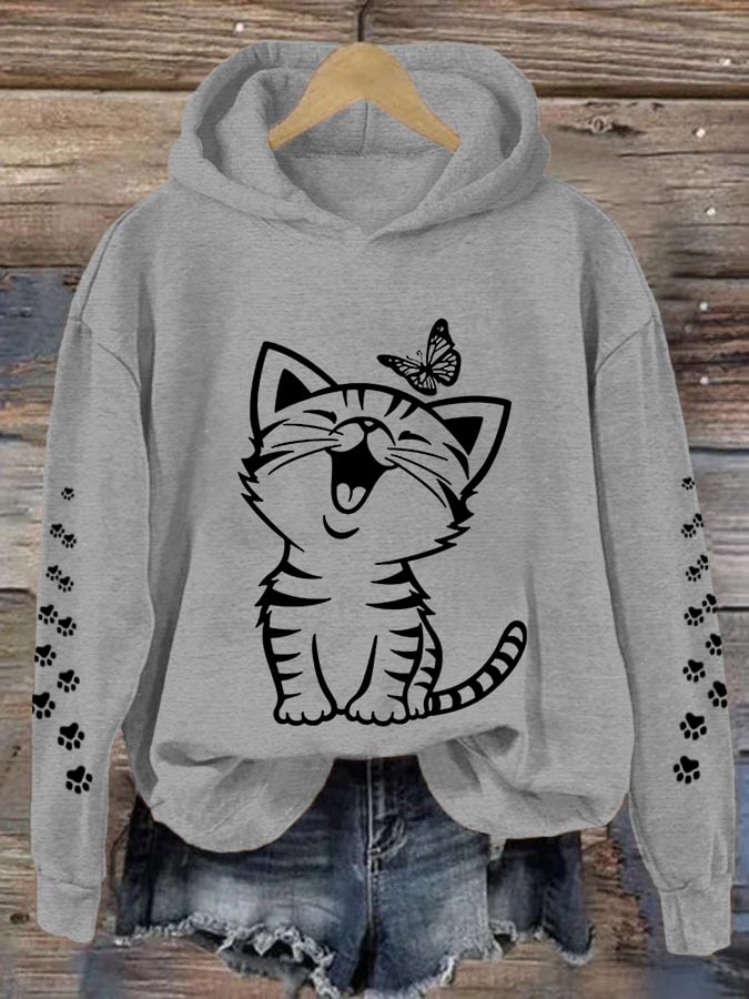 Women's Cute Cat Print Cat Lovers Casual Hoodie