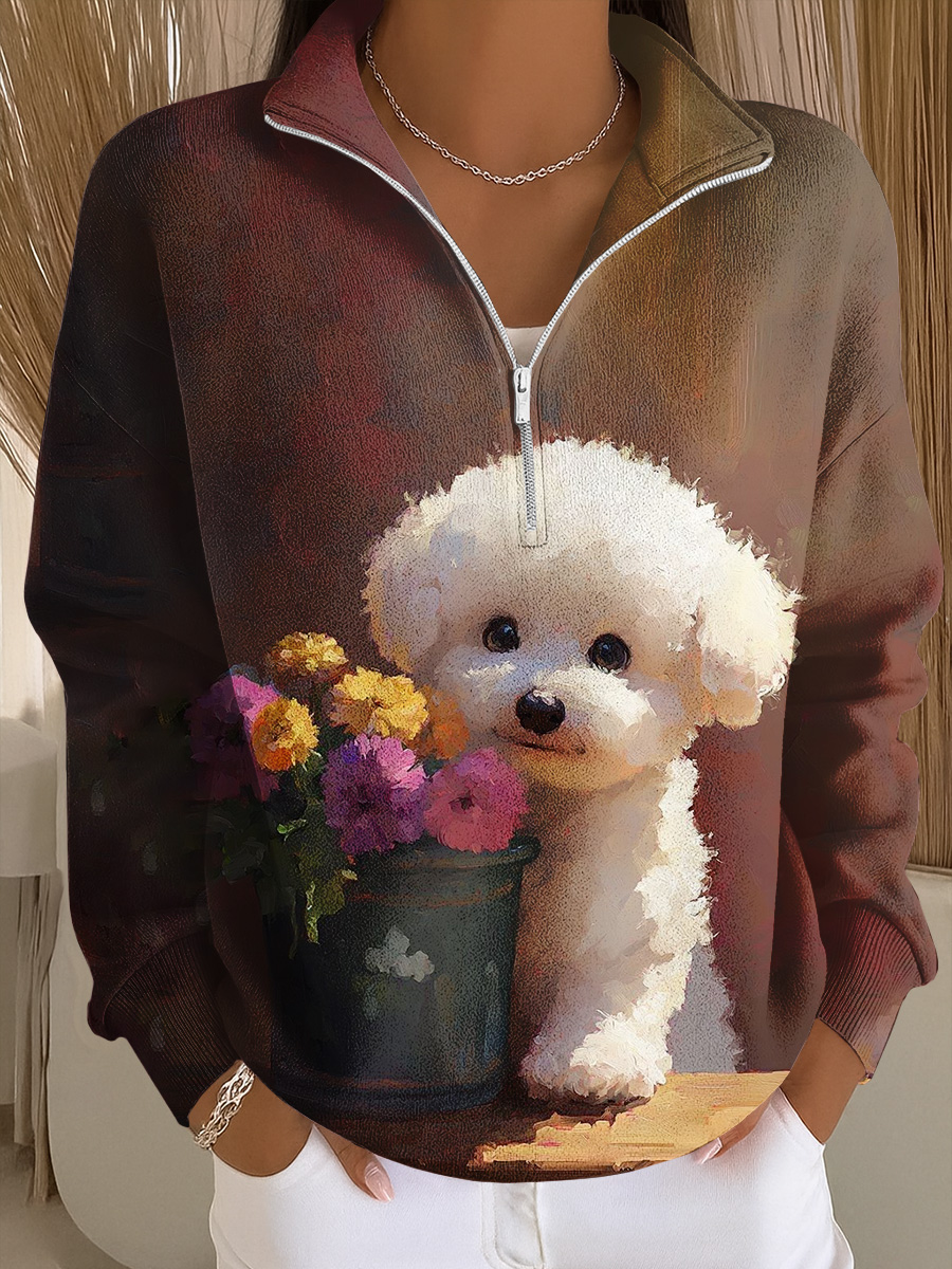 Women's Vintage Christmas Dog Printed Sweatshirt