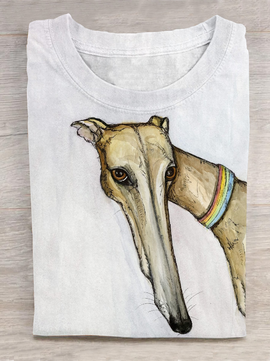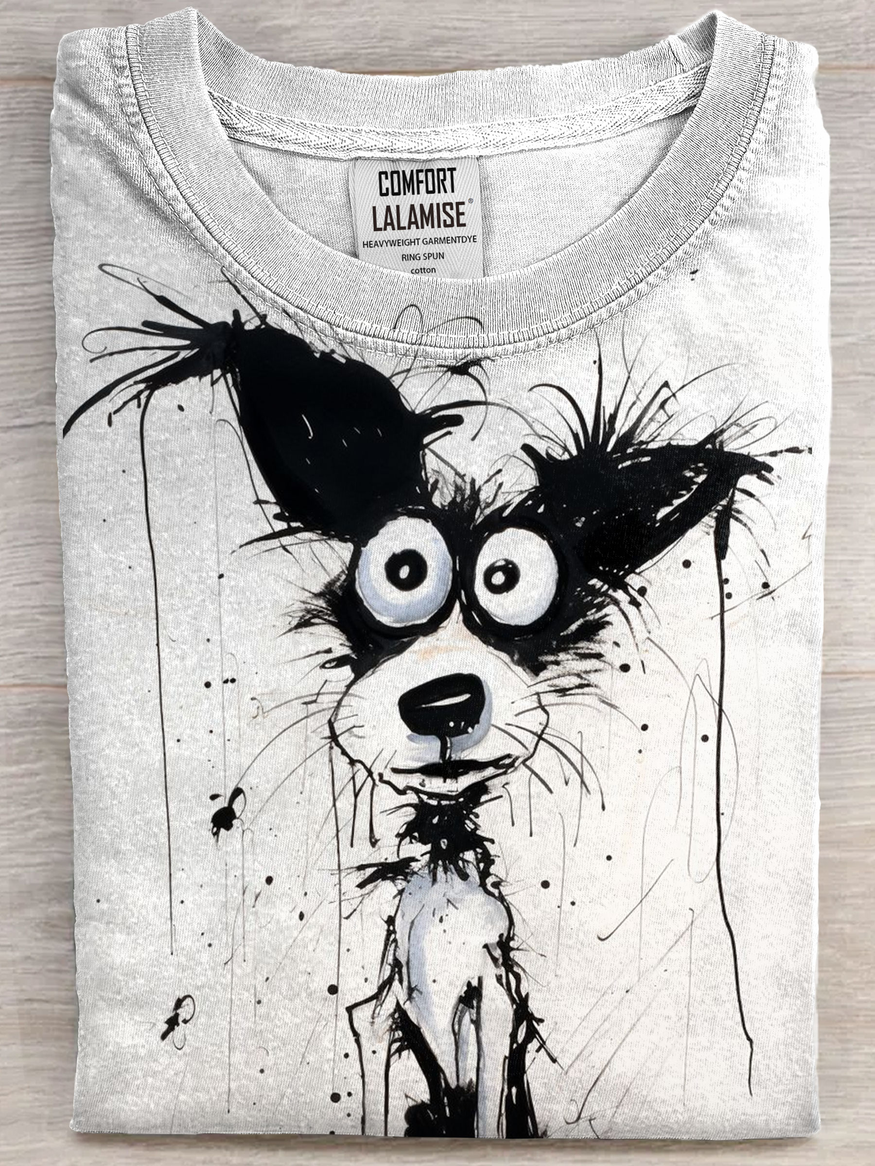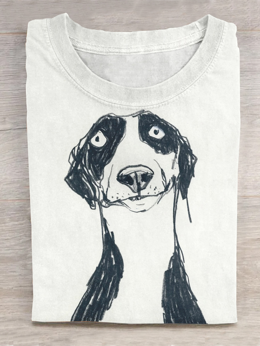 Cute Dog Art Print Casual Short Sleeve T-shirt